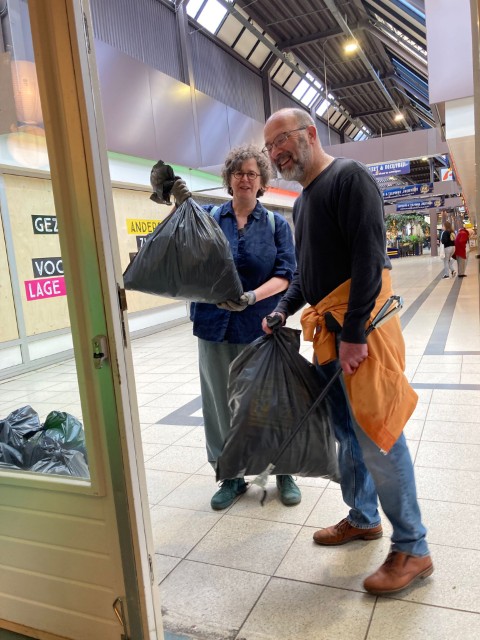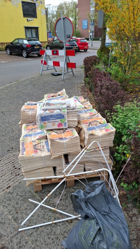 Ook in de rest van de buurt ligt genoeg spullen op straat. Rondom het winkelcentrum zelf ligt genoeg troep. Rondom een aantal studentenflats en op parkeerplaatsen ligt altijd genoeg troep. Uiteindelijk hebben we 14 volle vuilniszakken van straat gehaald in twee uur tijd. Een hele achterbak van een auto vol. Indrukwekkende hoeveelheid. De grotere stukken troep konden we helaas niet van straat halen, denk hierbij een oude kerstbomen, oude vuilnisbakken, een palet van hout met de gezinsbode van 15 april erop. We hebben het gemeld bij de gemeente via https://meldingen.groningen.nl/incident/beschrijf we hopen uiteraard dat de gemeente hiermee aan de slag gaat.